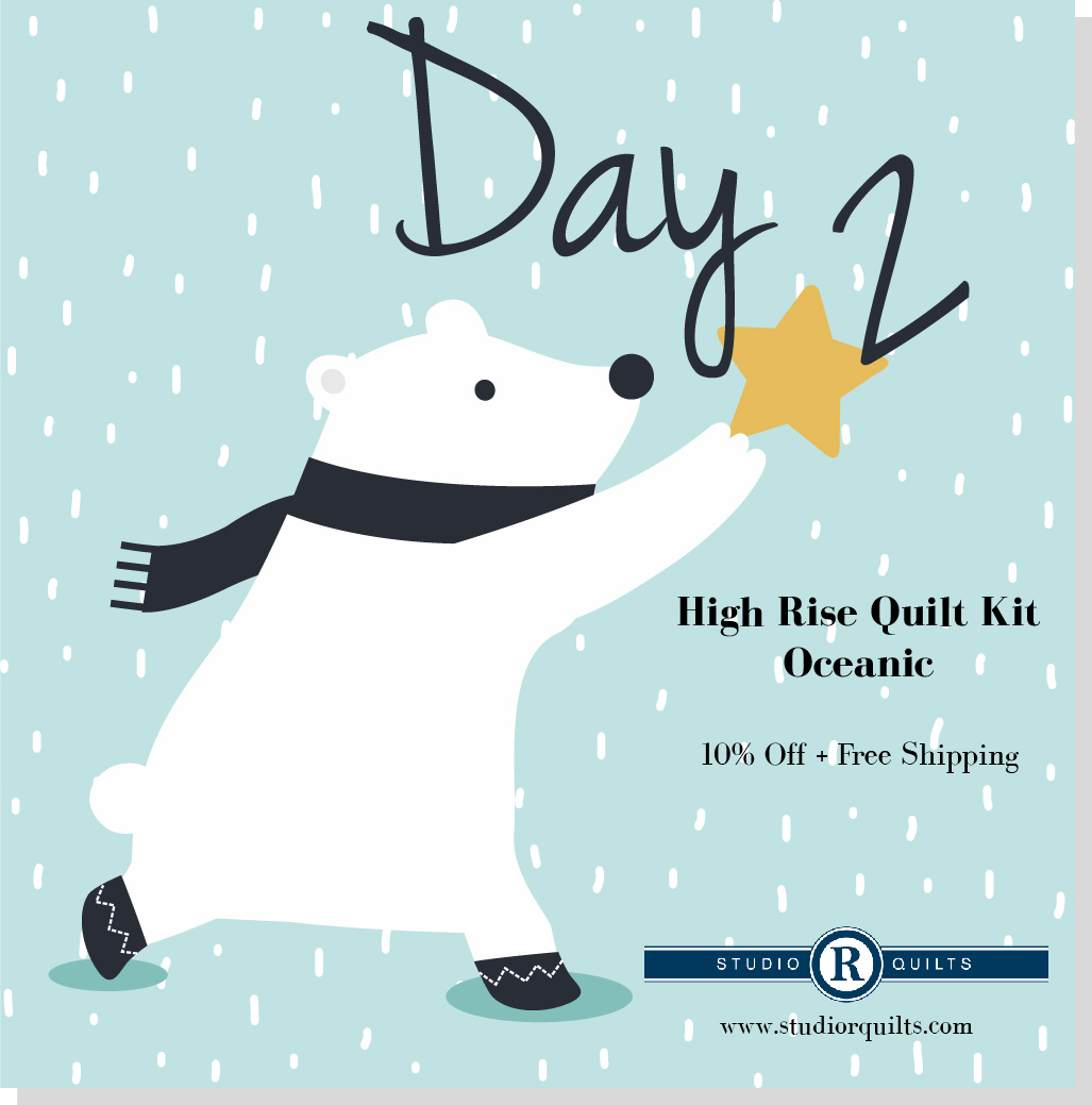 On the 4th Day of Christmas....Let’s kick this Friday off with a new special. On the 2nd Day of Christmas – December 2nd High Rise Quilt Kit: Oceanic – 10% off + Free Shipping Today, I am featuring the Sticks & Stones quilt kit. This kit makes the cover quilt in the navy and gingham fabrics. It's beginner friendly and oh so cute and simple. The Sticks and Stones Quilt Kit includes: 5/8 yard dark fabric, Michael Miller Cotton Couture, Ink 1-1/4 yards medium fabric, Navy Gingham, Maywood Studio Beautiful Basics 1-1/2