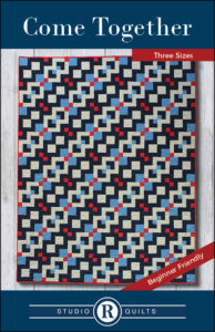 Two quilt block come together and move your eyes across the quilt. Come Together quilt pattern is perfect for beginner to intermediate quilters. This pattern includes detailed instructions and color illustrations for pricing the quilt top in three sizes: small – 45″ x 63″, medium – 63″ x 81″ and 81″ x 99″. Pattern also includes a coloring sheet to experiment with your own colorway.